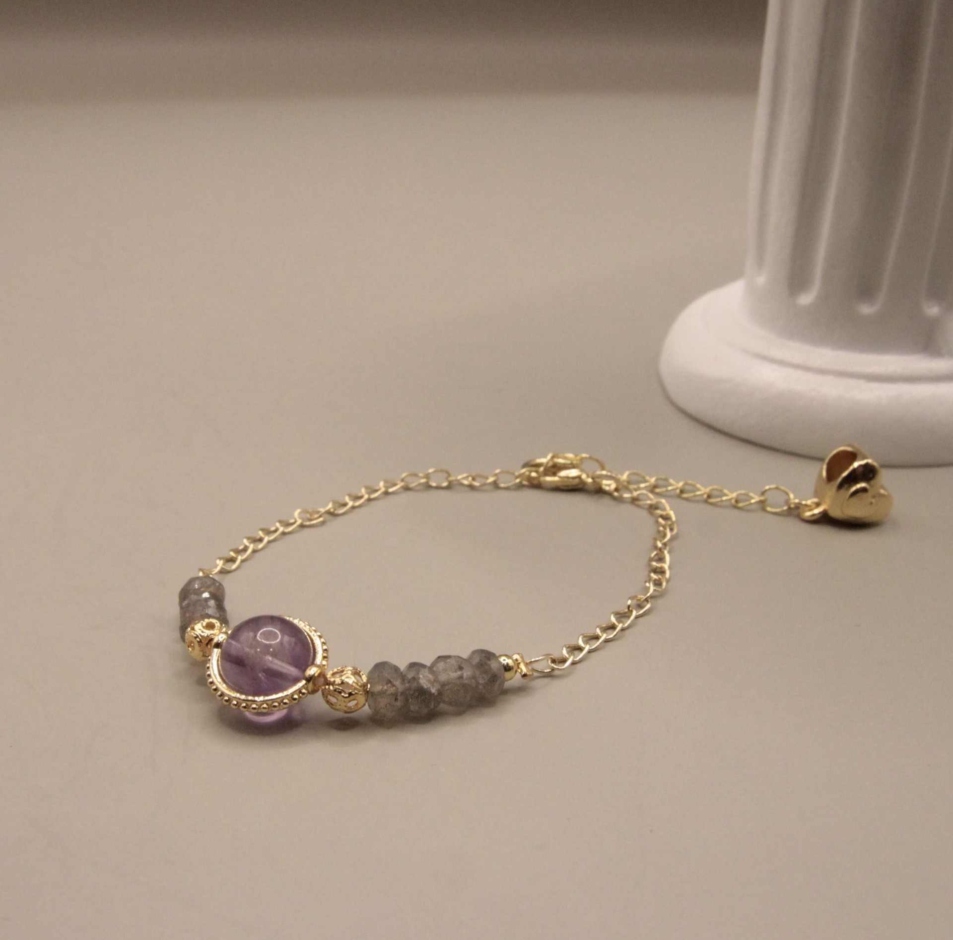 『秋風』紫水晶+切角拉長石,天然無處理水晶,14K銅注金手鍊,設計款文創手作|元元圓滾滾