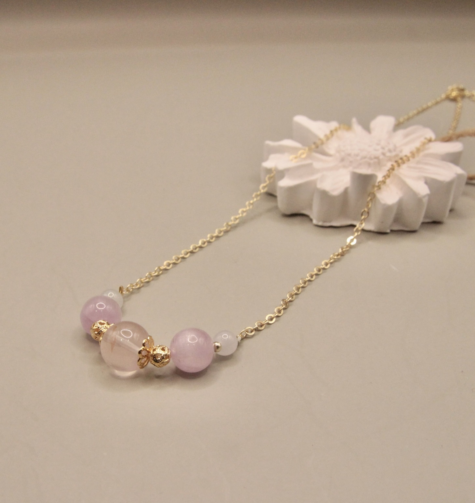 『粉色之戀』紫鋰輝+粉晶,天然無處理水晶,14K銅注金項鍊,設計款文創手作