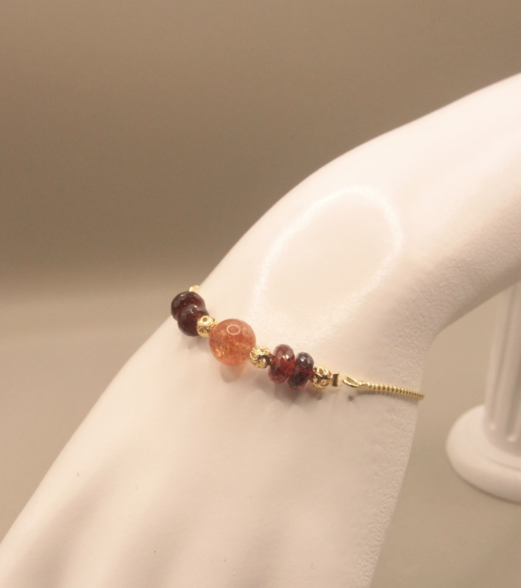 『朔日星河』太陽石+紅石榴石手鍊,天然水晶,14K銅注金手鍊,設計款文創手作|元元圓滾滾
