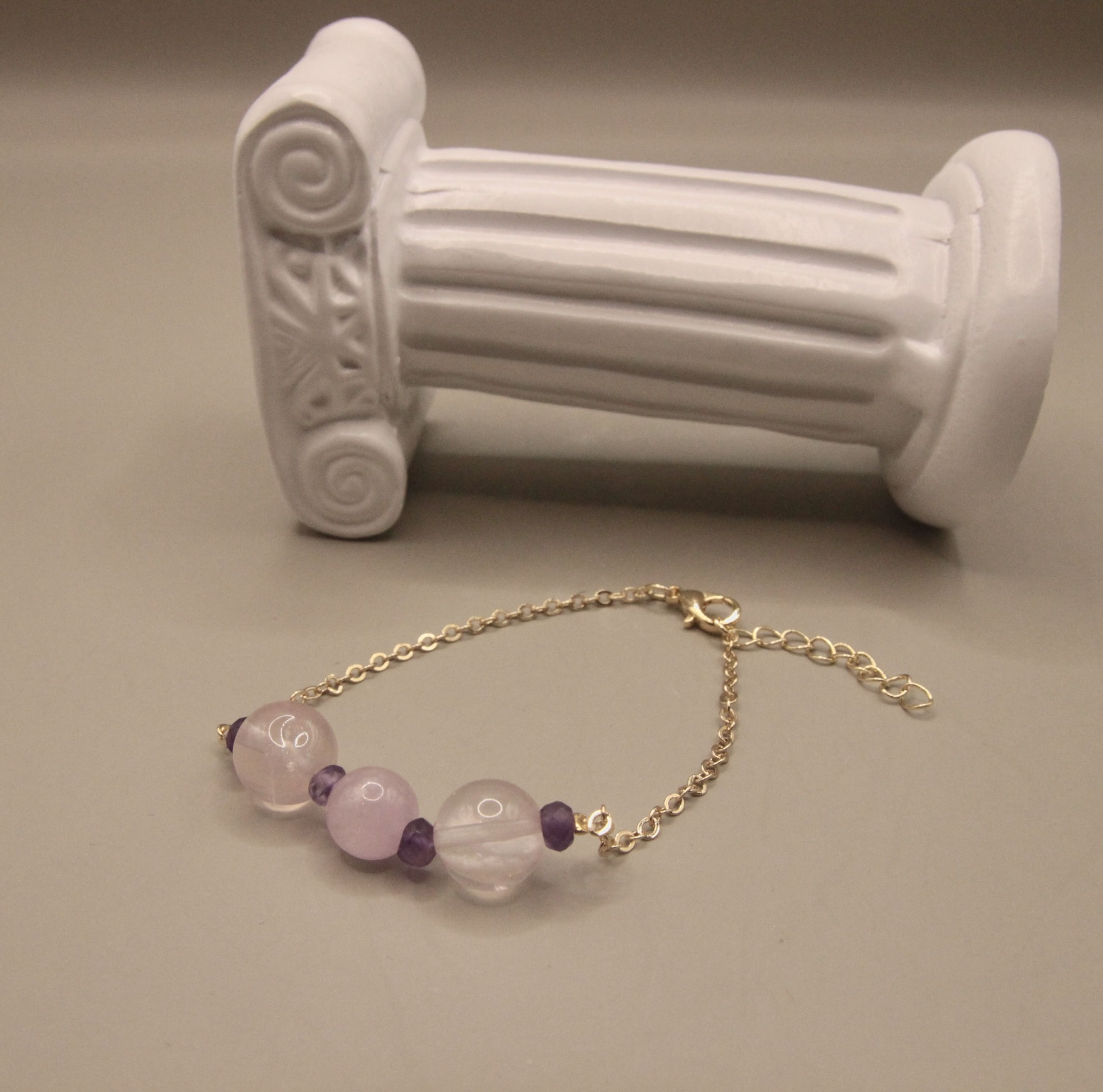 『伊甸園』紫鋰輝+紫水晶+粉晶,天然無處理水晶,14K銅注金手鍊,設計款文創手作|元元圓滾滾