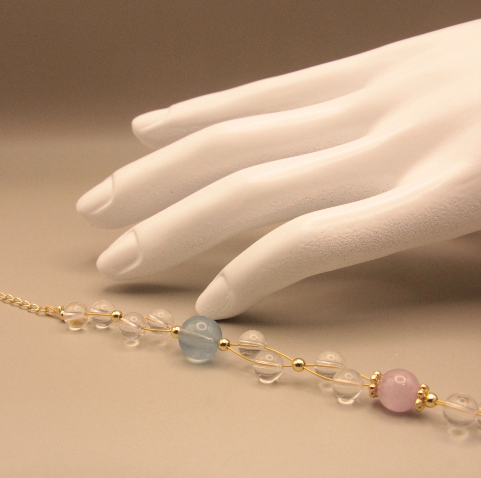 『粉色之戀』粉晶+紫鋰輝石,天然無處理水晶,14K銅注金手鍊,設計款文創手作|元元圓滾滾