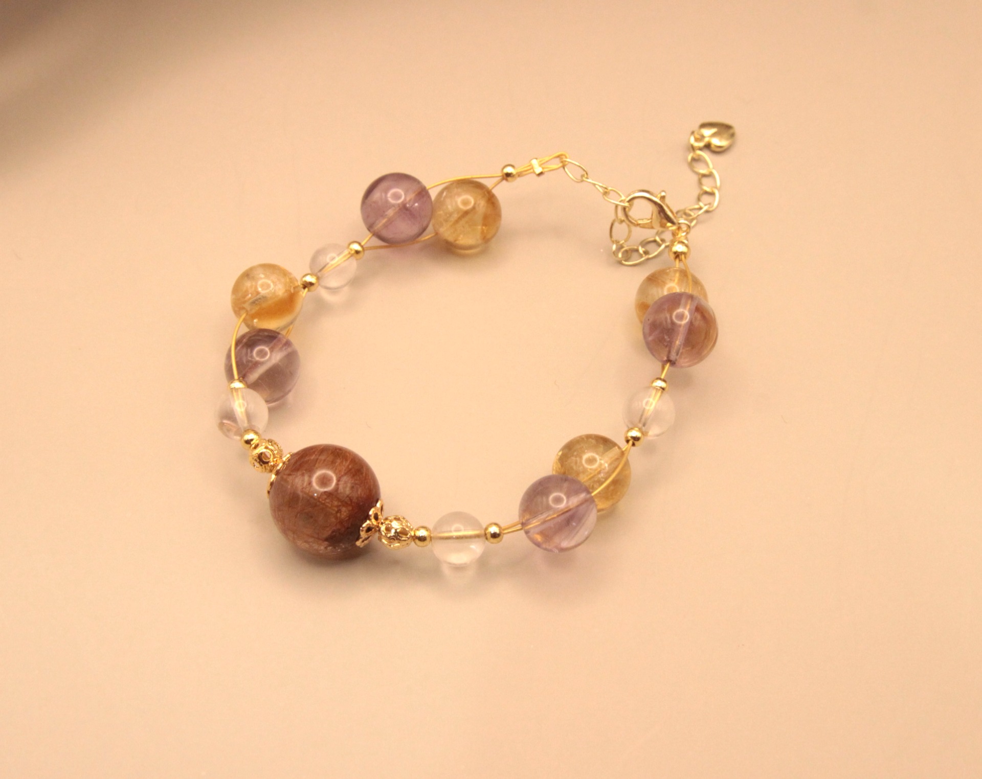 『碩果』紅銅鈦+紫水晶+黃水晶,天然無處理水晶,14K銅注金手鍊,設計款文創手作|元元圓滾滾