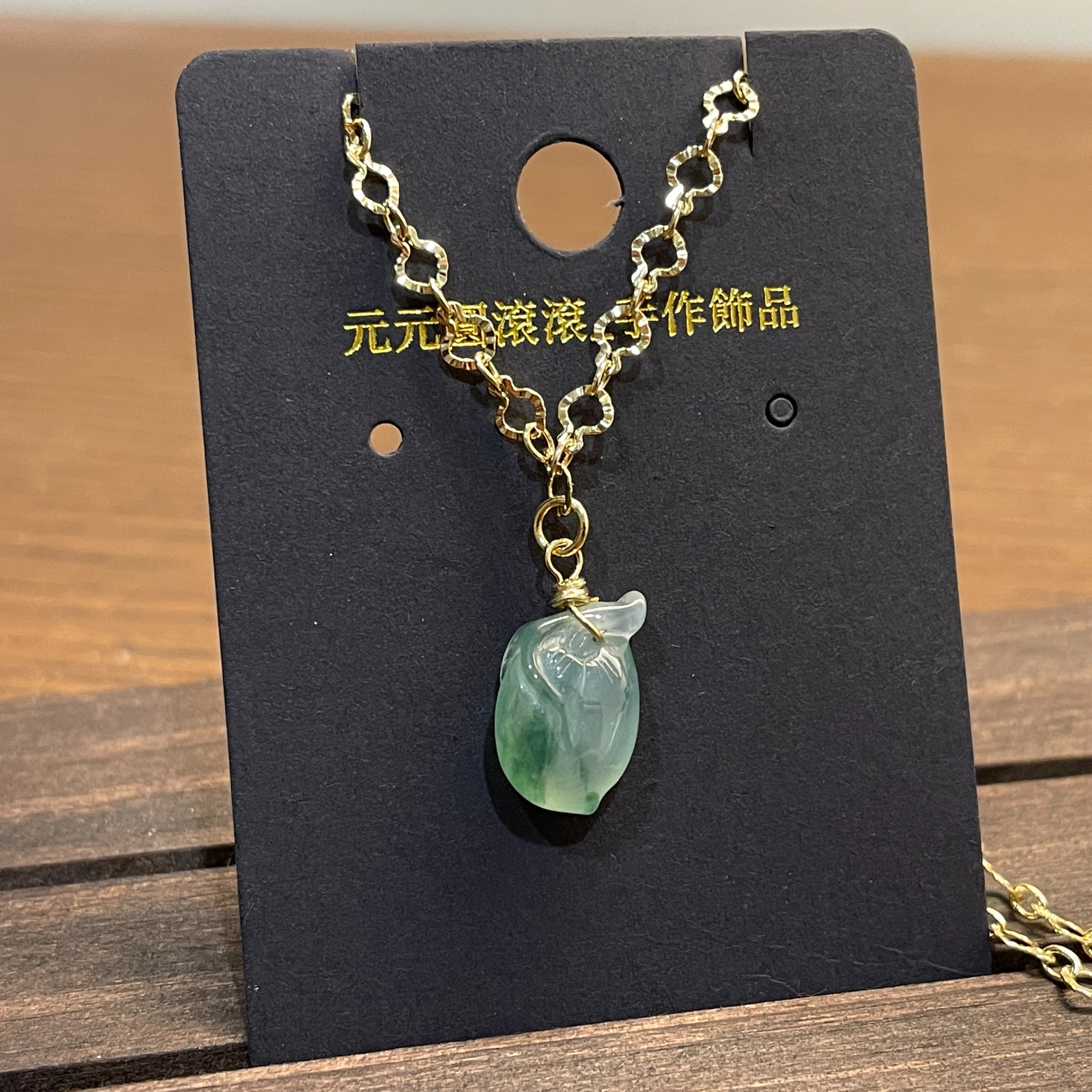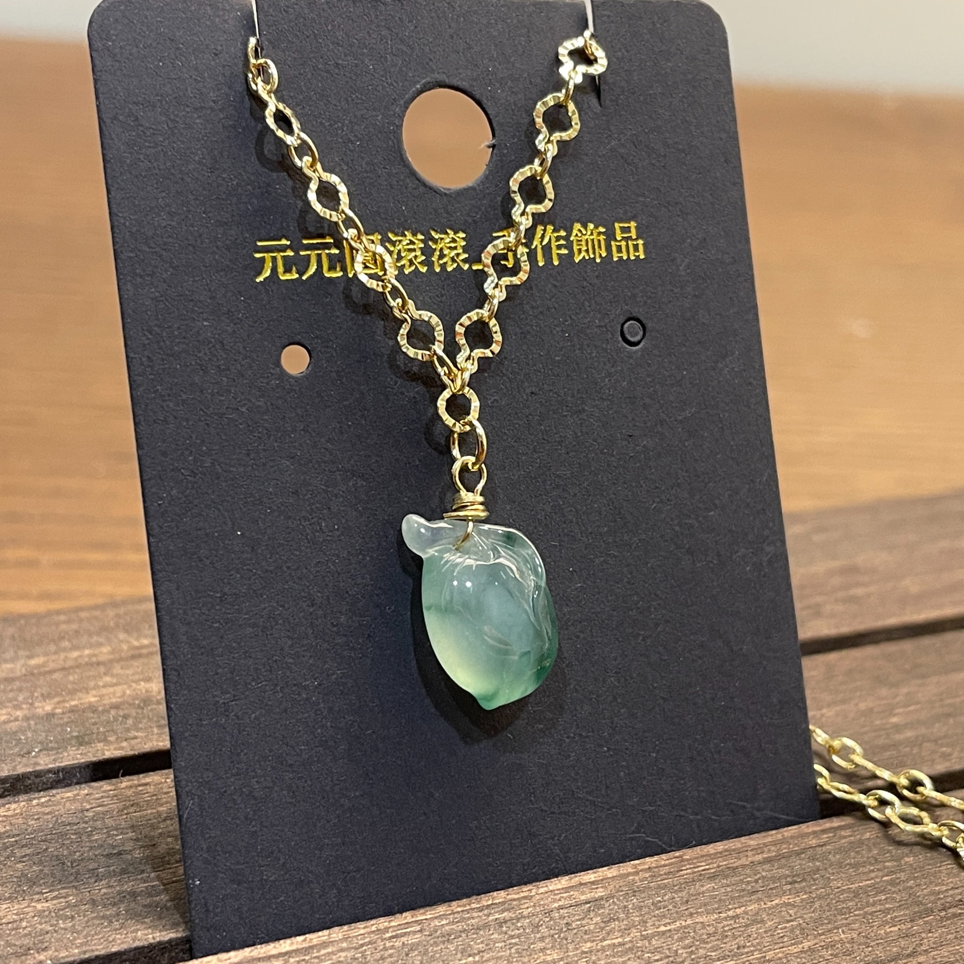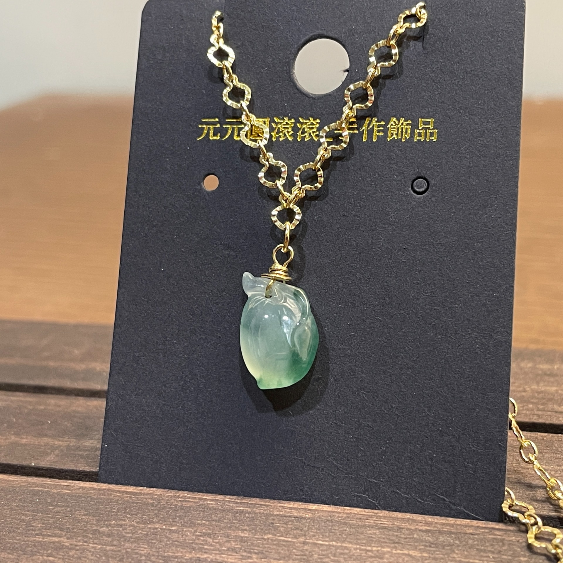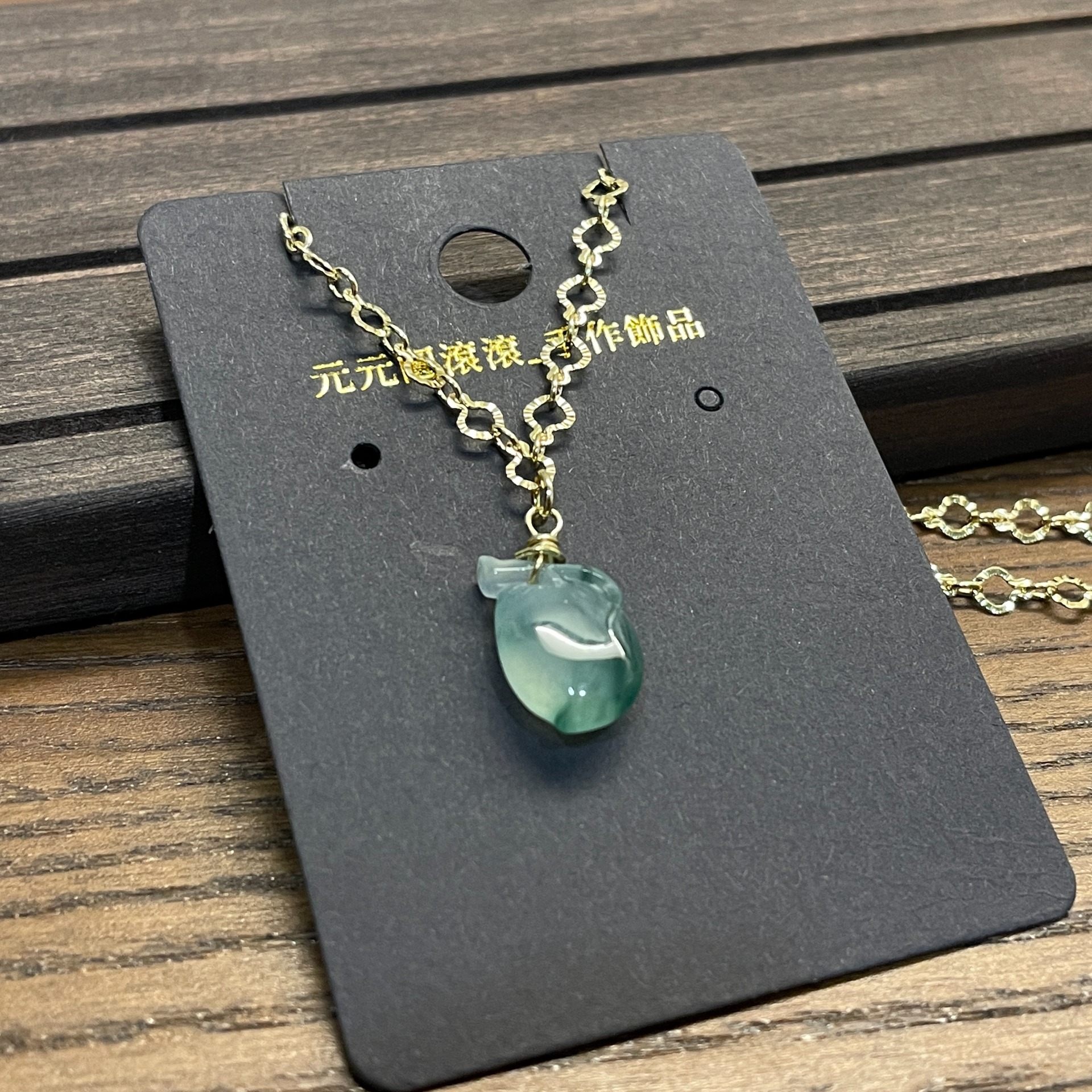 「隨心所玉」天然緬甸玉-高冰飄花壽桃,圓潤飽滿,14k注金翡翠項鍊