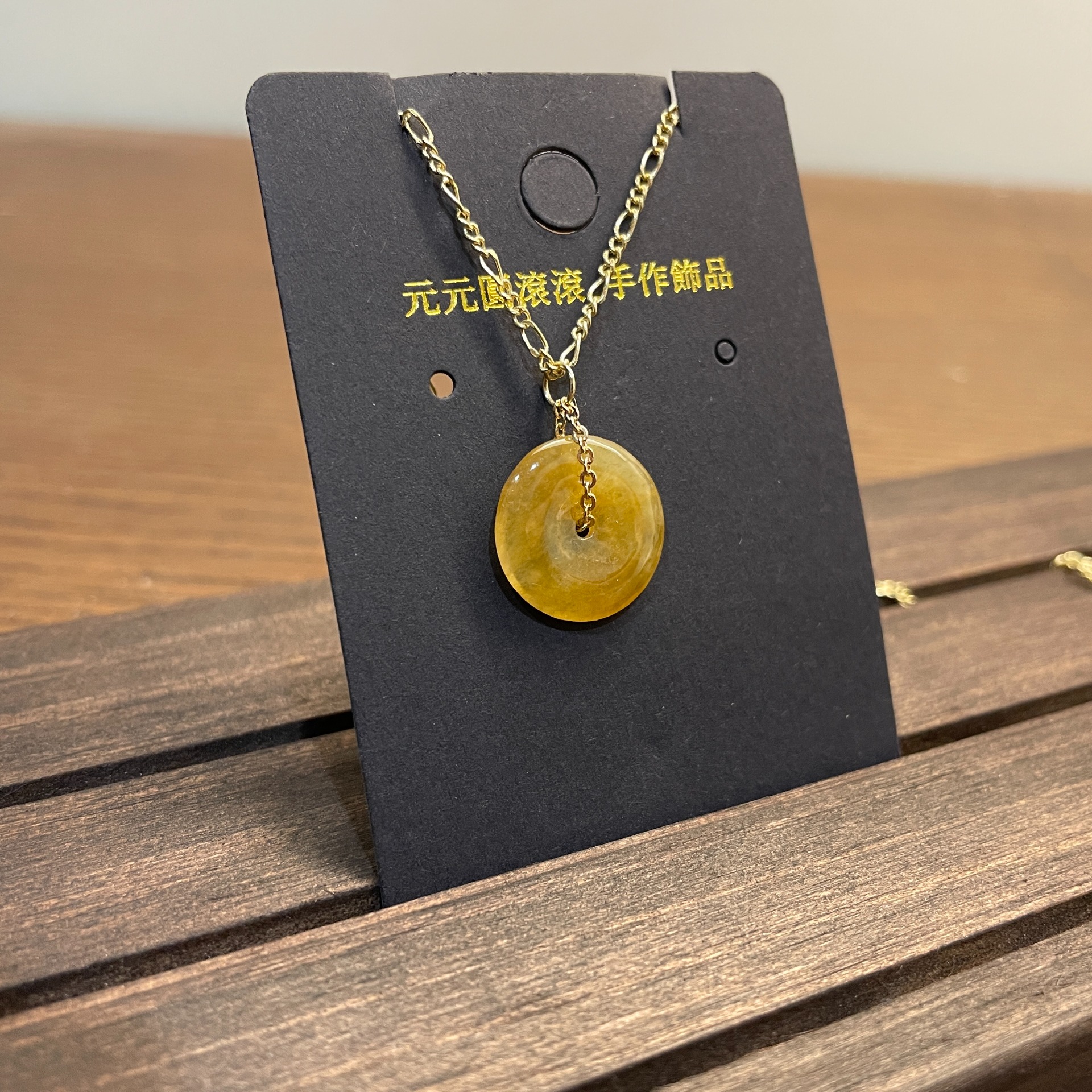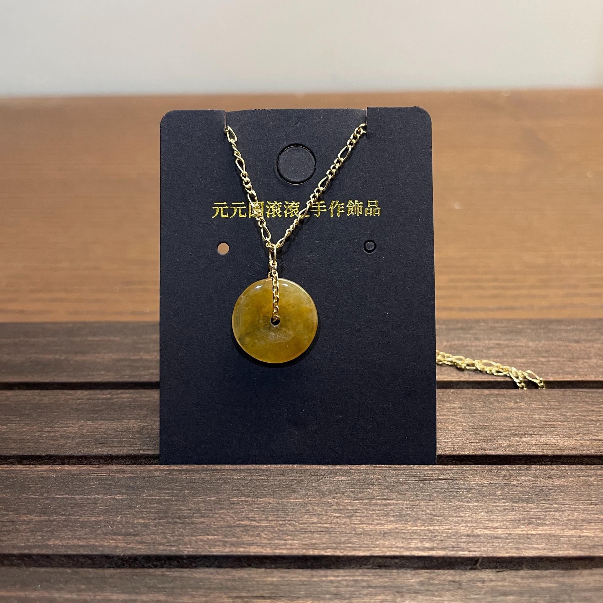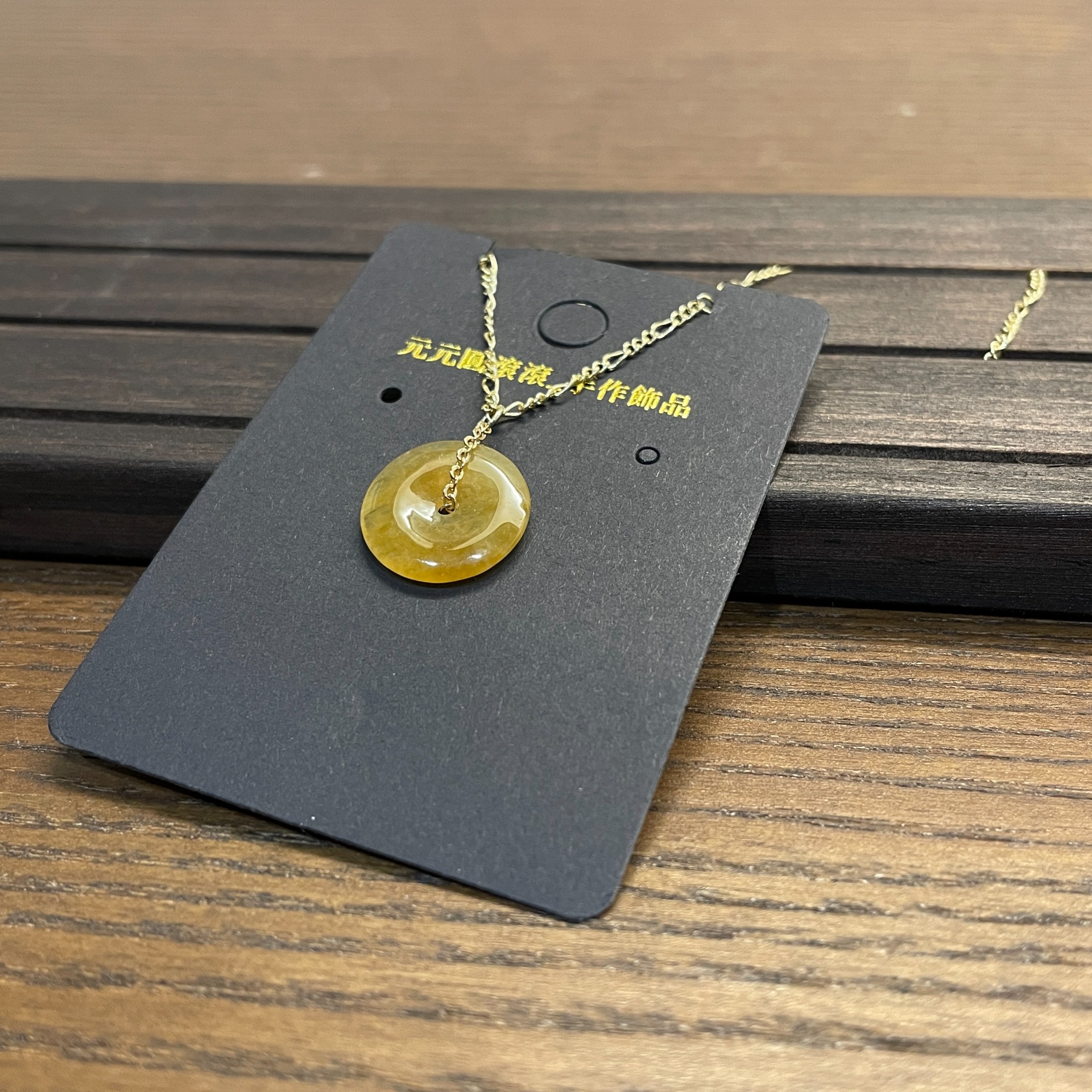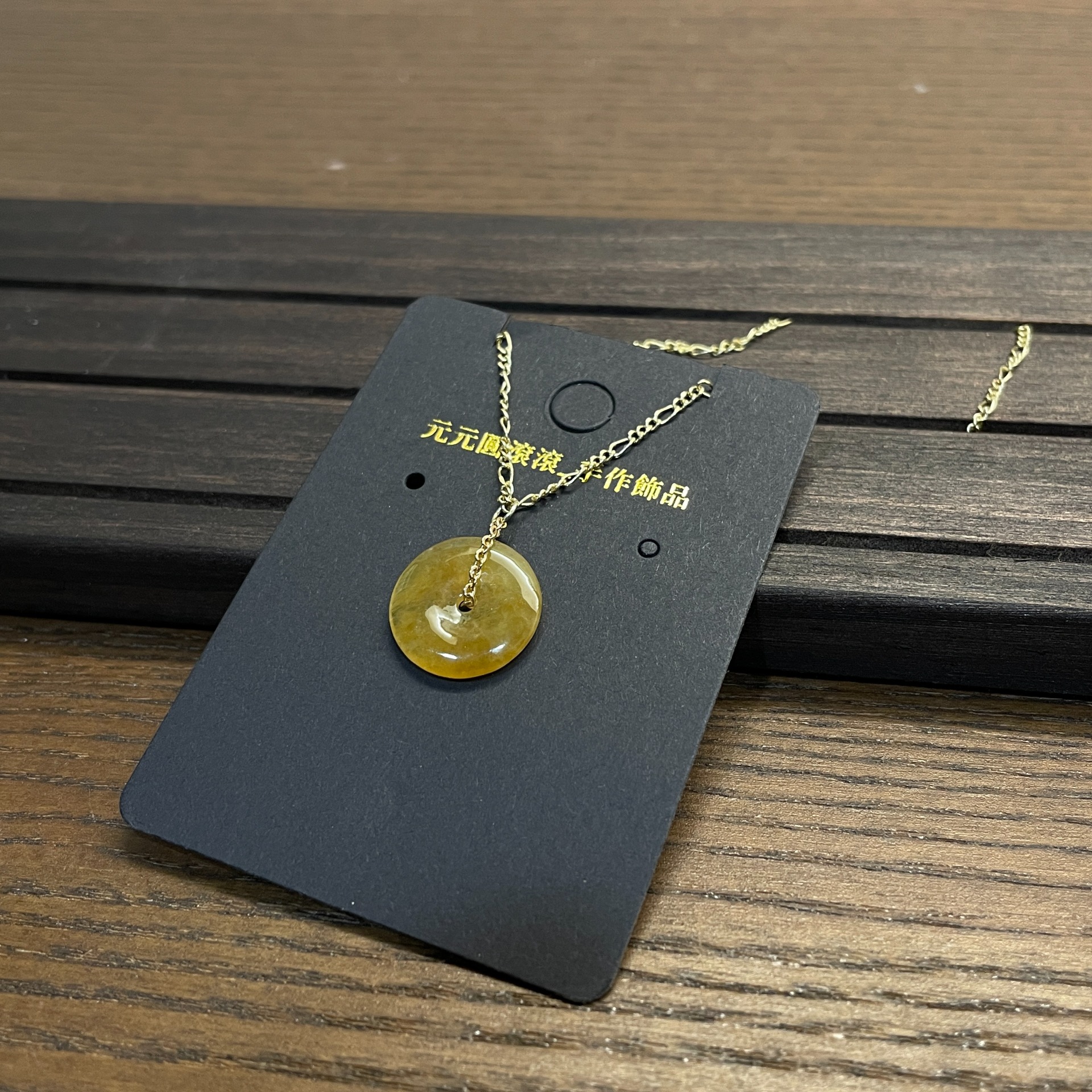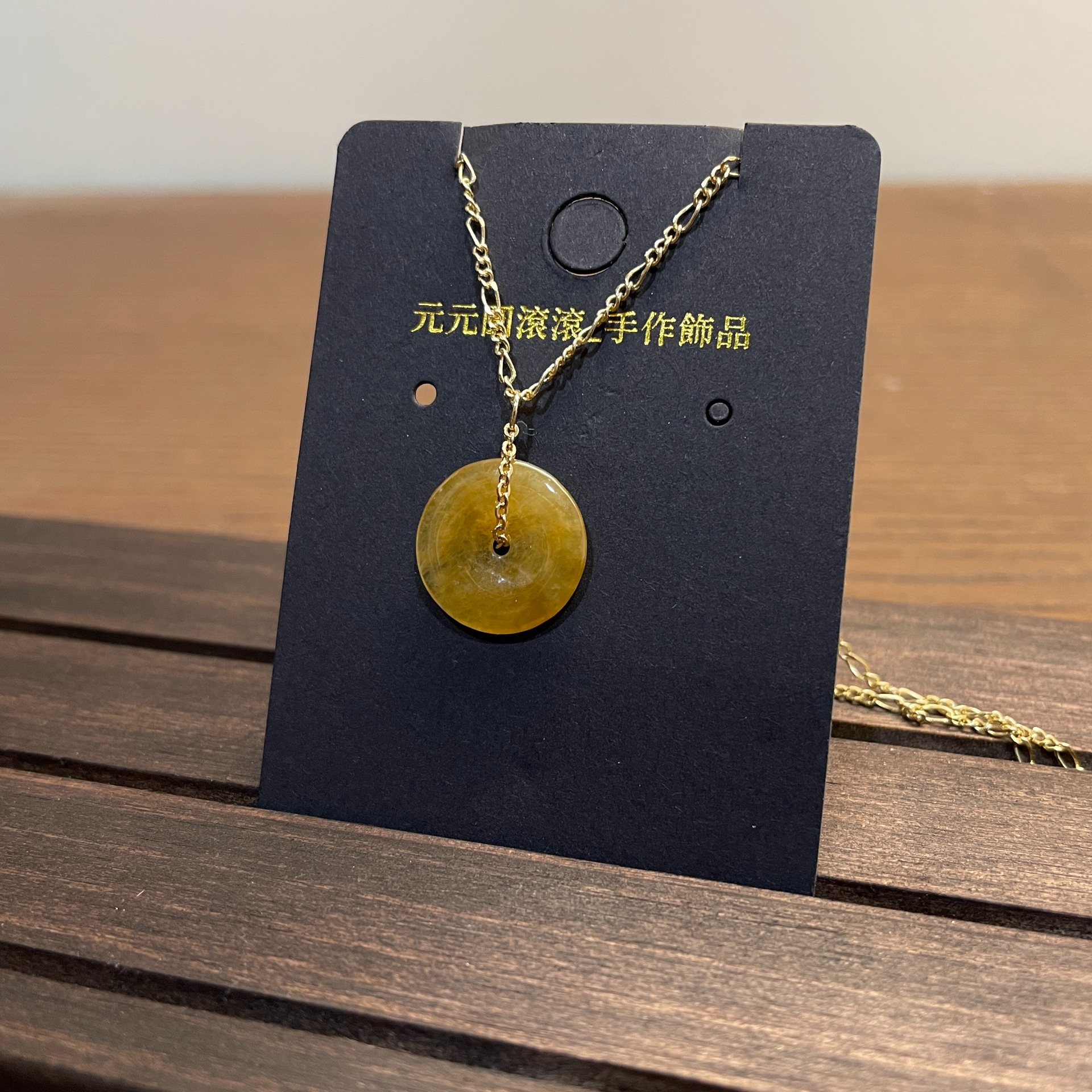「隨心所玉」超值特價,天然緬甸玉,冰黃平安扣翡翠項鍊,14k注金翡翠項鍊