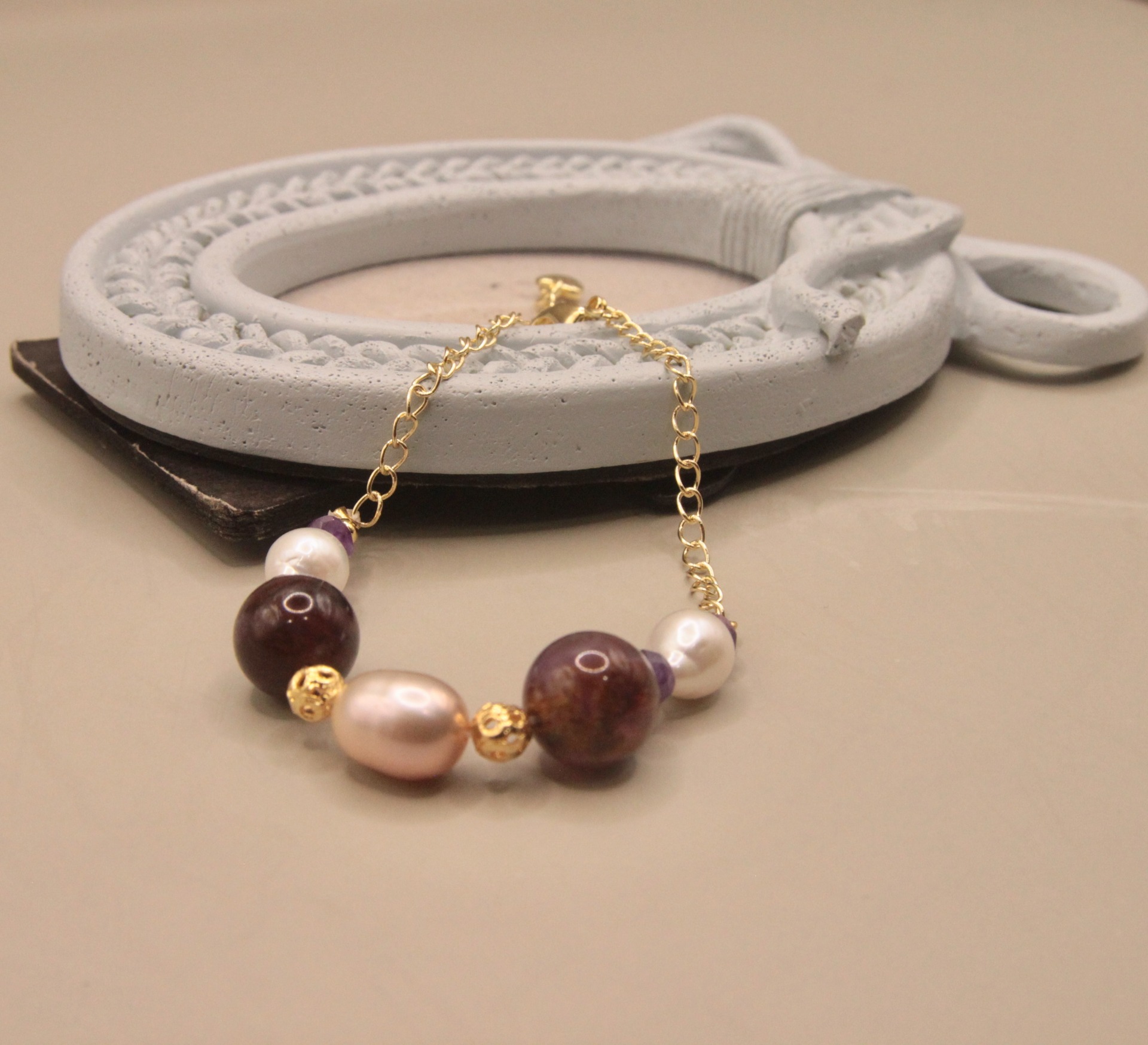 寶石:天然珍珠+紫幽靈水晶手鍊