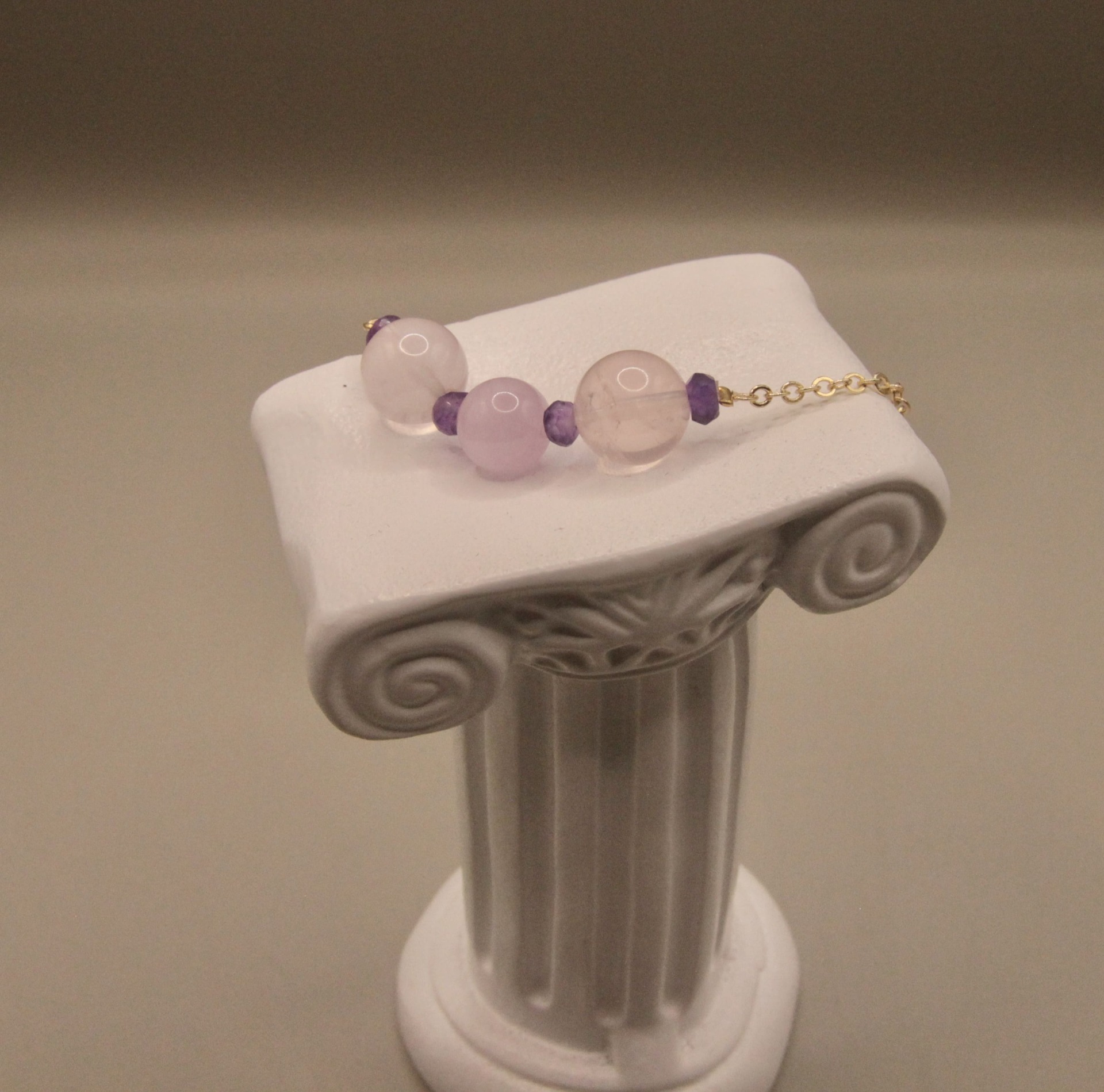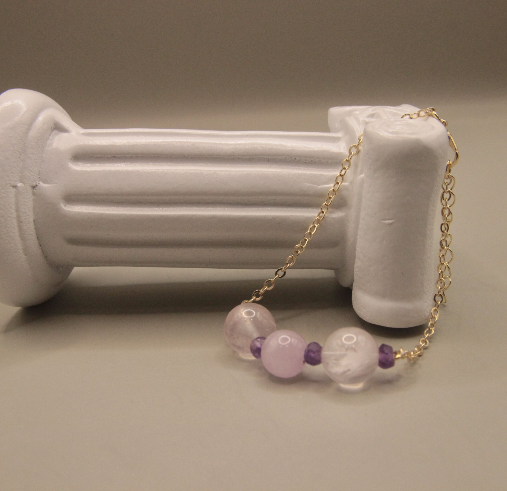 『粉色之戀』粉晶+紫鋰輝石,天然無處理水晶,14K銅注金手鍊,設計款文創手作|元元圓滾滾