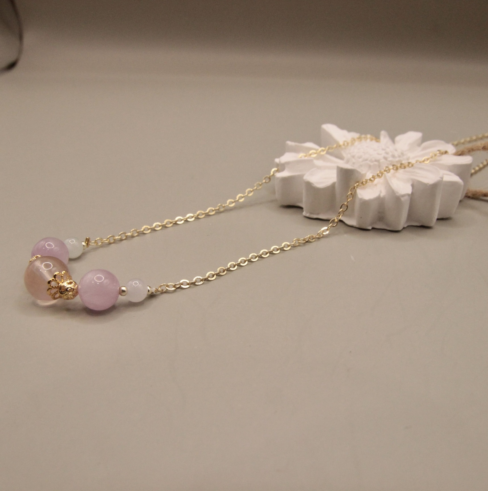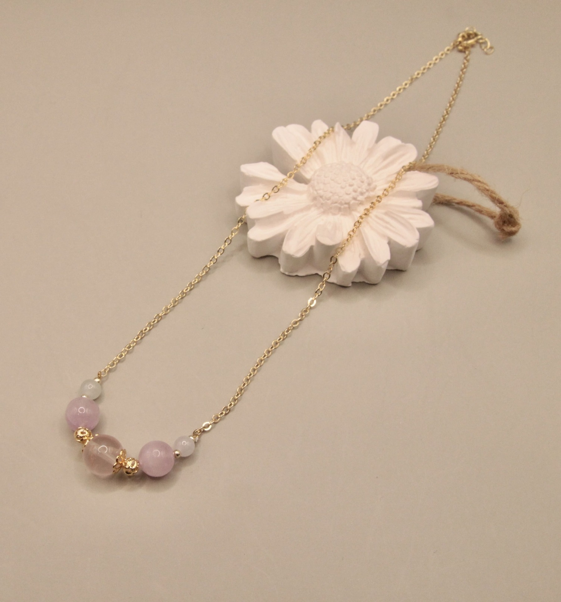『粉色之戀』紫鋰輝+粉晶,天然無處理水晶,14K銅注金項鍊,設計款文創手作|元元圓滾滾