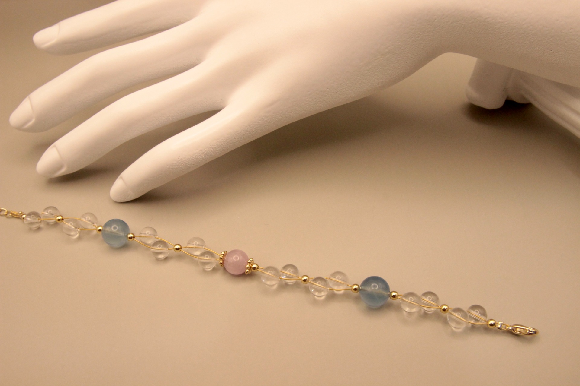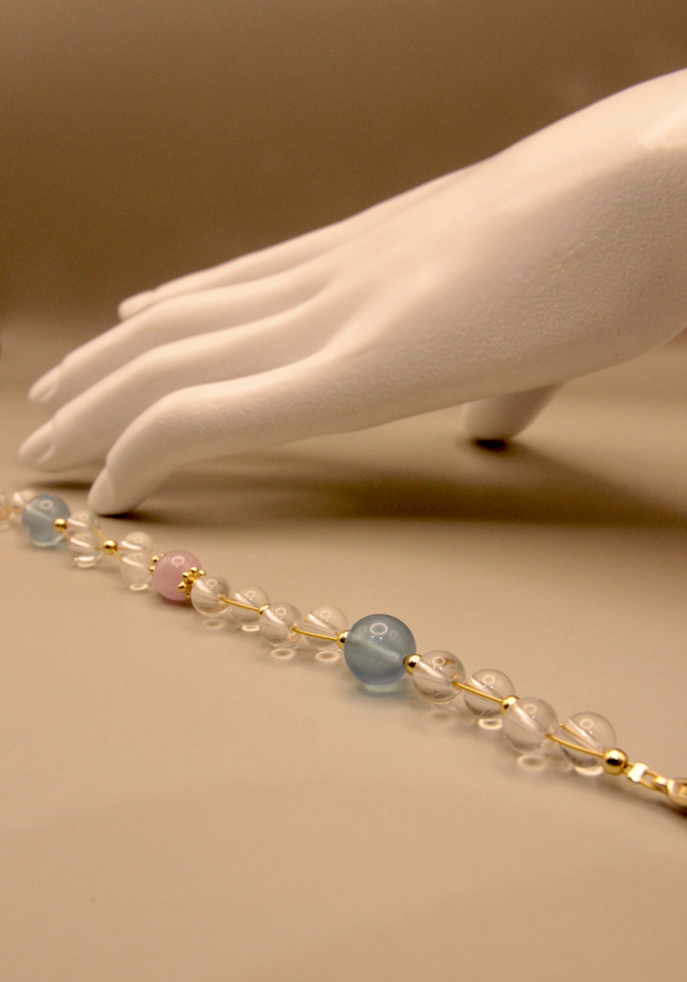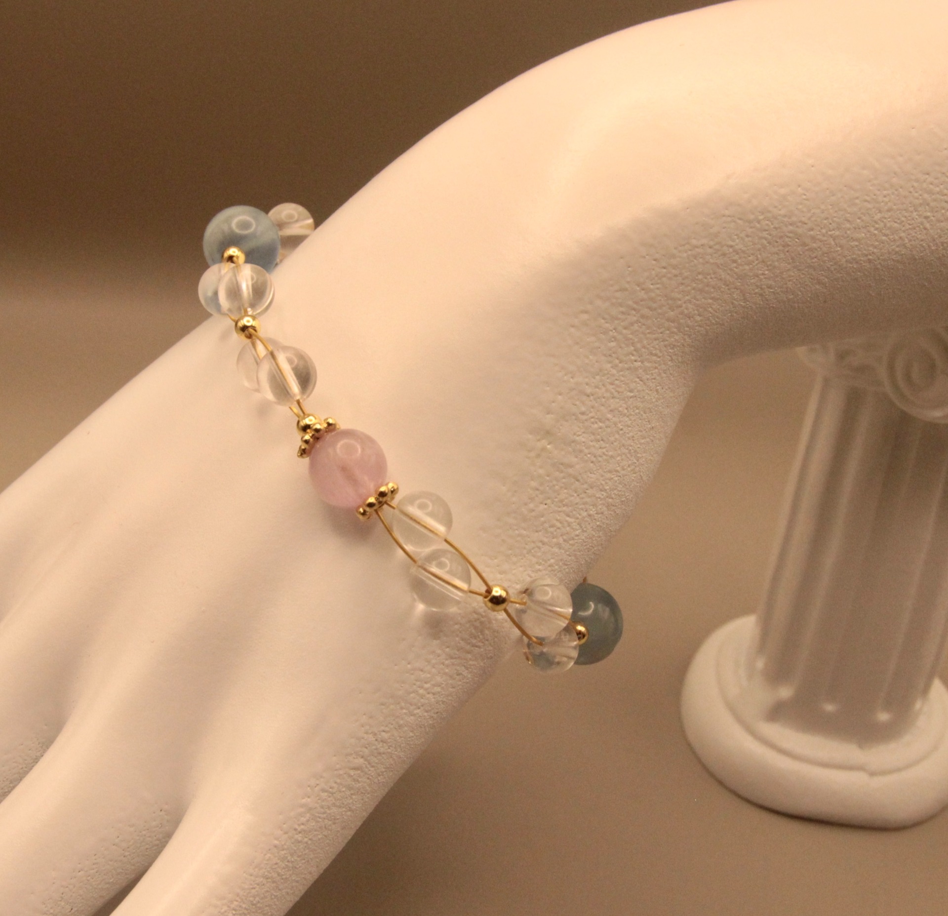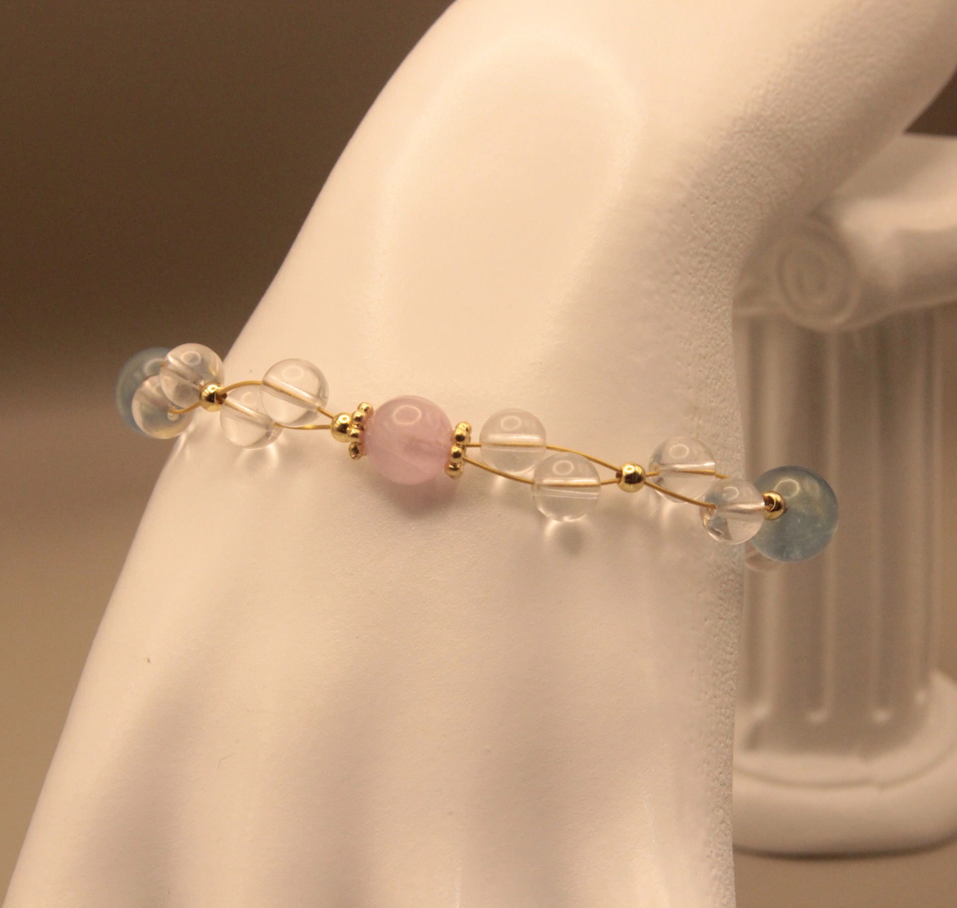 寶石:海藍寶+孔賽石+白水晶材質:14K銅注金手鍊